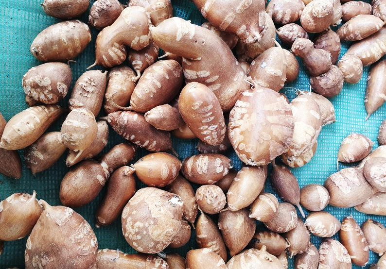 인디언감자는 우리가 흔히 먹는 감자보다는 크기가 작으며, 감자의 포슬포슬한 식감에 인삼의 은은한 향이 나는 것이 특징입니다.